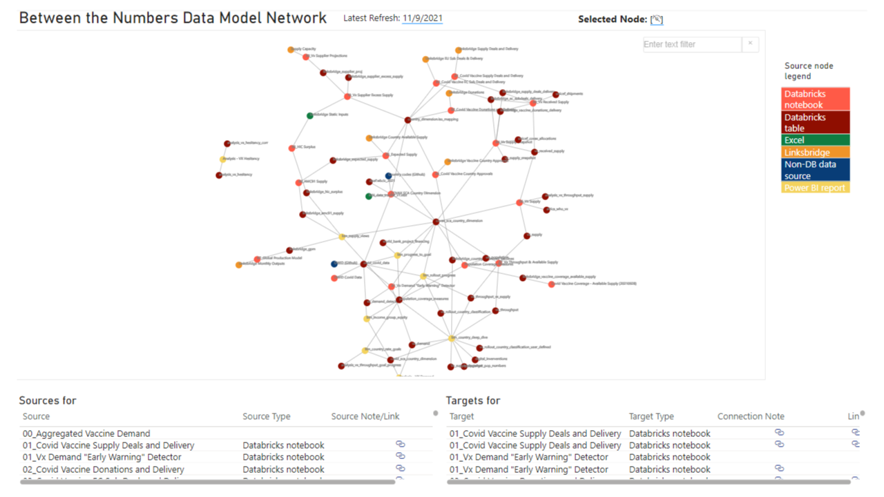 To keep this mess under control and turn it into a masterpiece, I built a lineage tracker and network diagram for all of the relationships between Databricks notebooks and the reporting suite. This allowed the technical team to complete regression testing faster after changes were made to the model, and allowed for the latest data to be available to end users within hours instead of days